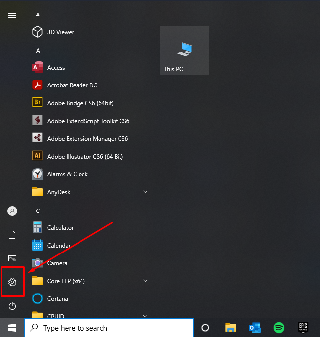 Windows ayarlarına ulaşmamız gerekli bunun için, başlat‘a basıp daha sonra Ayarlar düğmesine tıklayabiliriz, arama kısmına Settings (ayarlar) yazıp ulaşabiliriz veya klavyedeki Windows + I tuşlarına basarak Windows ayarlarını açabiliriz.